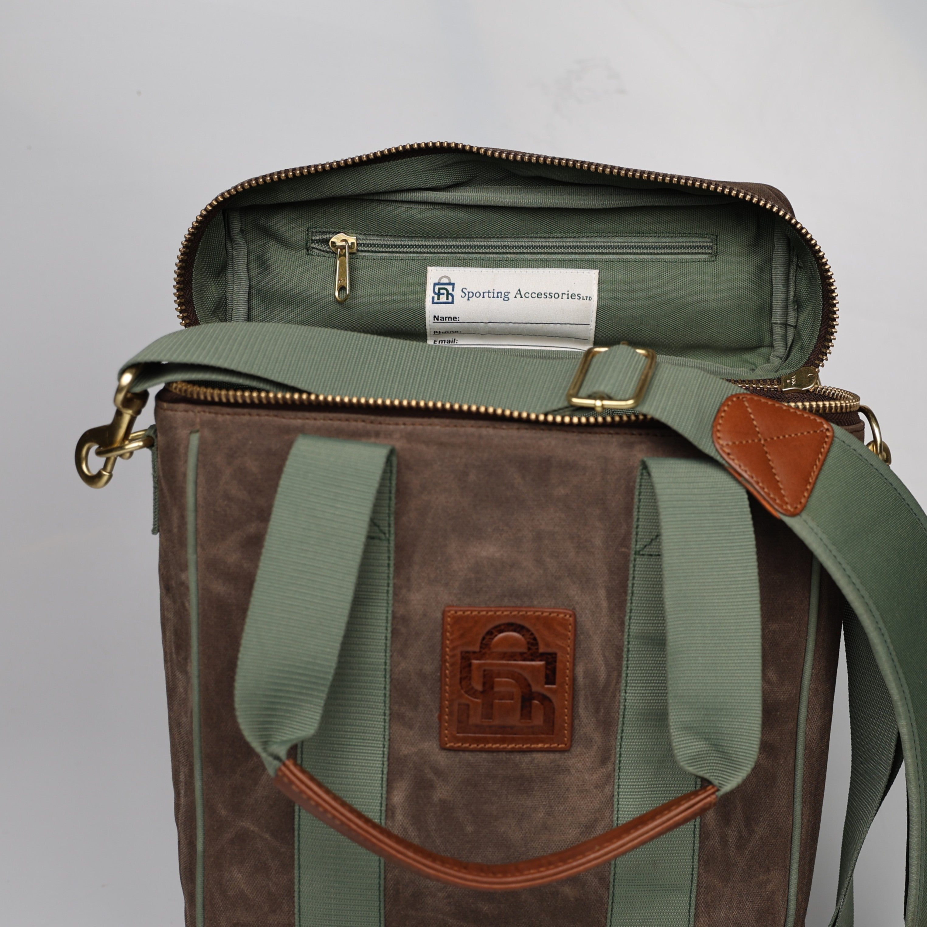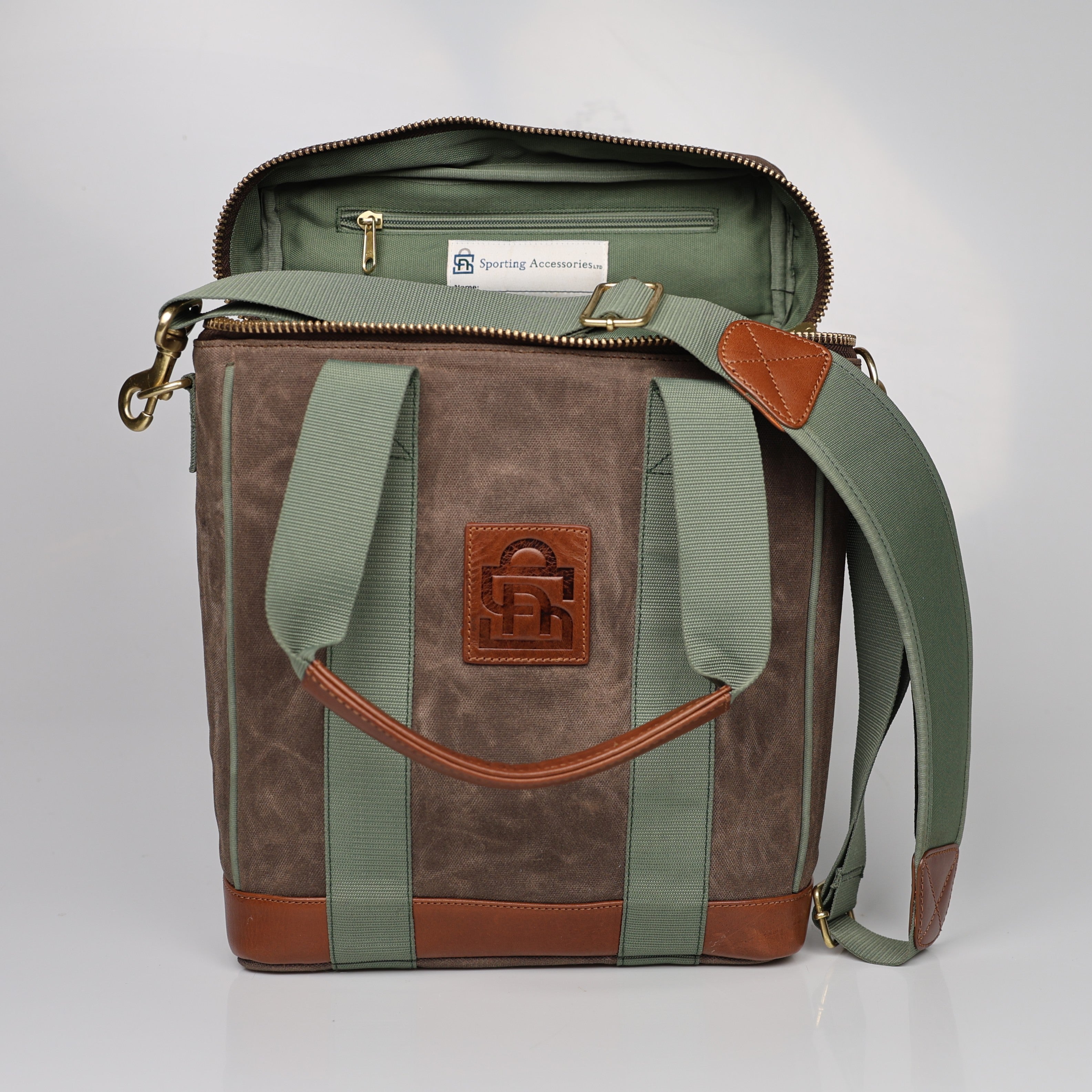 or those of us who like to be prepared and because two bottles are never enough. Our Wine & Whiskey Tote is designed to hold up to three bottles of your favorite Scotch, Bourbon, or Red Wine. Crafted from our 18 oz. waxed canvas, the interior is lined with our 600D Nylon canvas and trimmed with our signature leather. This tote is well insulated & padded for protection with adjustable bottle separators to accommodate large bottles and a zippered storage pocket in the lid. Also, we included a name tag underneath the lid so you can make sure you claim it. Also great as a gift as well. Included are a deluxe corkscrew & anti-ox wine stopper from Pulltex. This patented technology keeps your open bottle of wine fresh for days! There is even a removable shoulder strap.